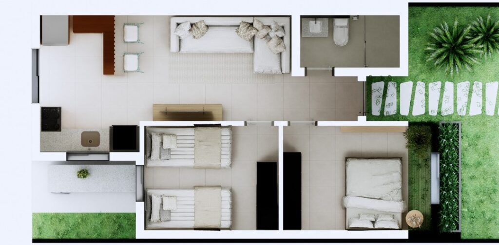 O equilíbrio ideal entre conforto e economia, com dois dormitórios para acomodar sua família.